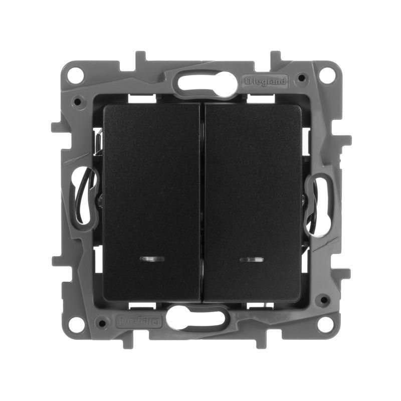 Выключатель 2-кл. СП Etika 10А IP20 250В 10AX с подсветкой/индикацией авт. зажимы механизм антрацит IEK 672604