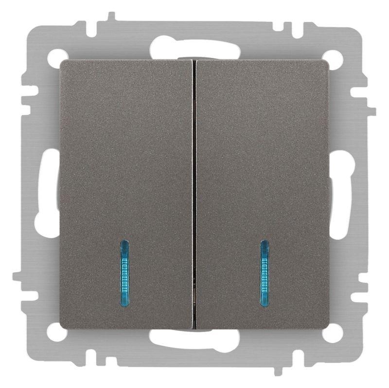 Выключатель 2-кл. СП Accent 6-105-09 10А IP20 250В с подсветкой AL/CU титан Intro Б0063525