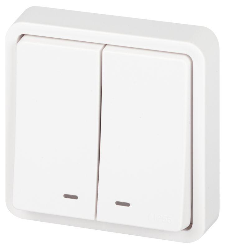 Выключатель Эксперт 11-1525-01 двойн. с подсветкой IP55 10АХ-250В СУ бел. Эра Б0063304