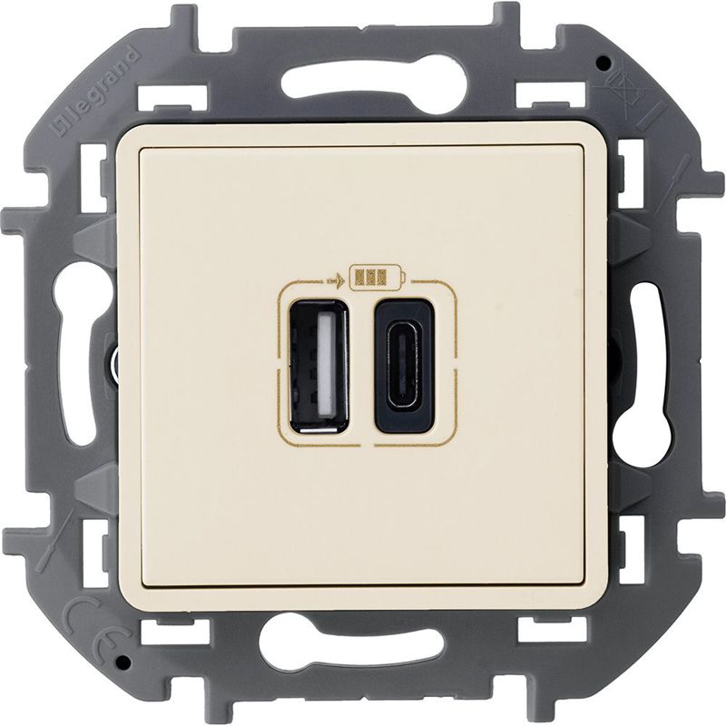 Устройство зарядное Inspiria с 2-мя USB разьемами A и C 240В/5В 3000мА сл. кость IEK 673761