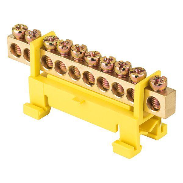 Шина нулевая PE 6х9 10 отверстий желт. изолятор тип "Стойка" на DIN-рейку латунь PROxima EKF sn0-63-10-sy