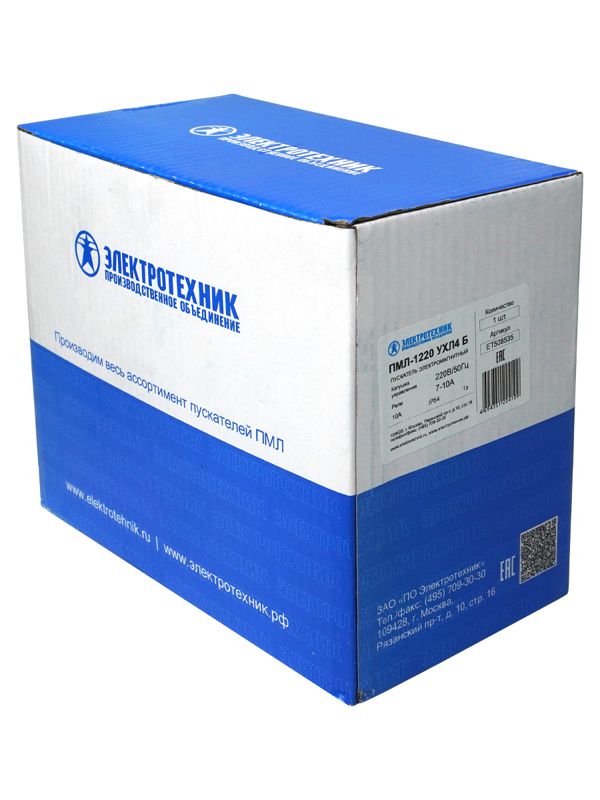 Пускатель ПМЛ-1220 УХЛ4 Б 10А кат. 220В 1НО IP54 с реле 7-10А в корпусе с кнопками ПУСК + СТОП Электротехник ET508535