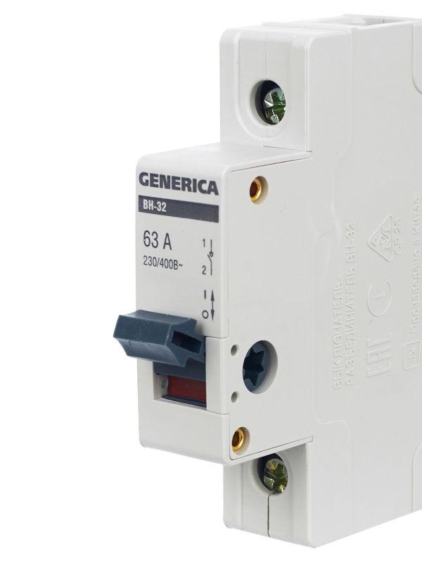 Выключатель нагрузки (мини-рубильник) 1п 63А ВН-32 GENERICA MNV15-1-063
