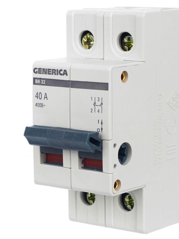 Выключатель нагрузки (мини-рубильник) 2п 40А ВН-32 GENERICA MNV15-2-040