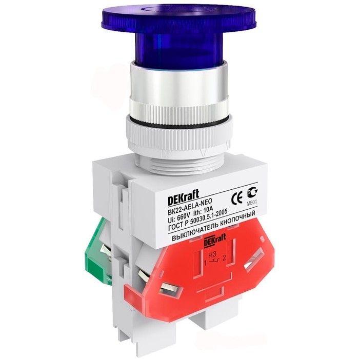 Выключатель кнопочный "Грибок" AELA ВК-22 d22мм 220В неон син. DEKraft 25032DEK