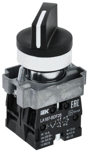 Переключатель LA167-BDF25 на 2 полож. 1НО+1НЗ черн. KARAT IEK BSW20-BDF25-3-24-67-2-K02