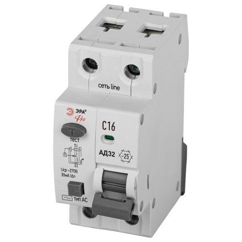 Выключатель автоматический дифференциального тока 1P+N C 16А 30мА тип AC защита 230В АВДТ 4.5кА PRO D32E2C16AC30P АД32 электронное Эра Б0057351
