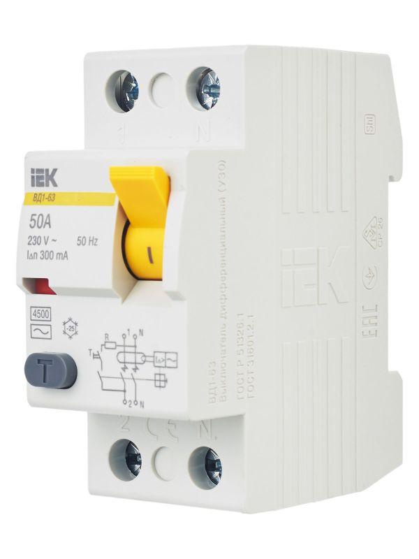 Выключатель дифференциального тока (УЗО) 2п 50А 300мА тип AC ВД1-63 KARAT IEK MDV10-2-050-300