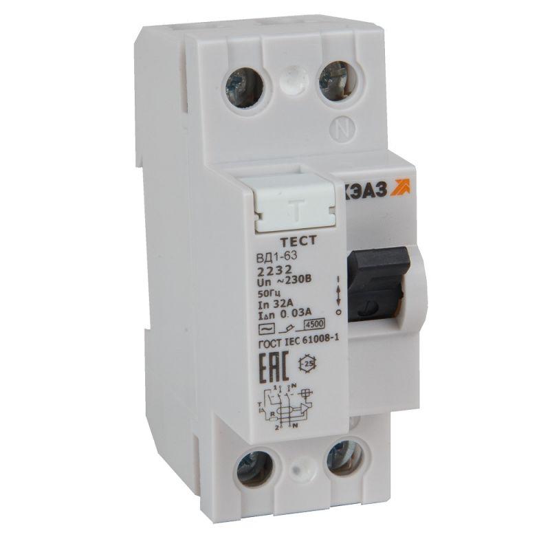 Выключатель дифференциального тока (УЗО) 2п 63А 30мА ВД1-63-2263-АС УХЛ4 электронное КЭАЗ 318463
