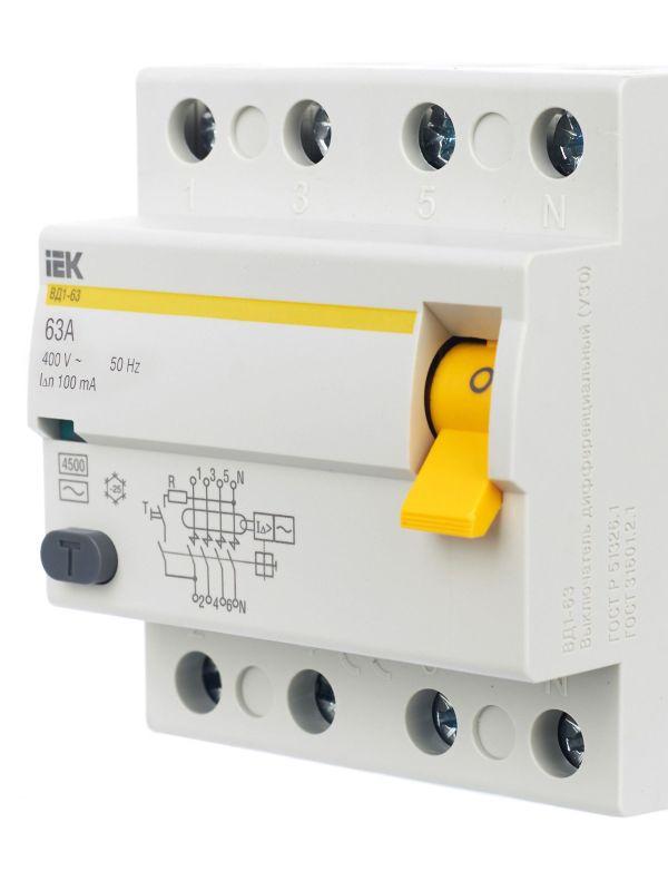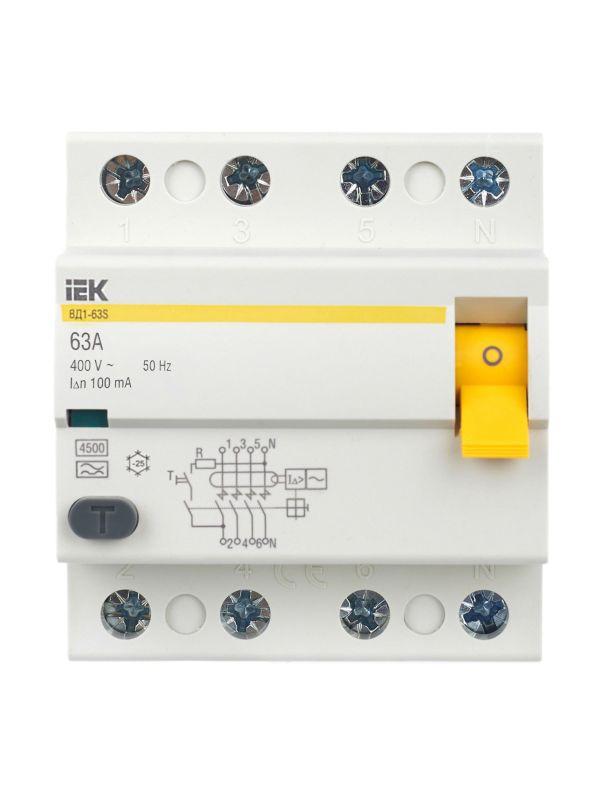 Выключатель дифференциального тока (УЗО) 4п 63А 100мА тип A ВД1-63 KARAT IEK MDV11-4-063-100