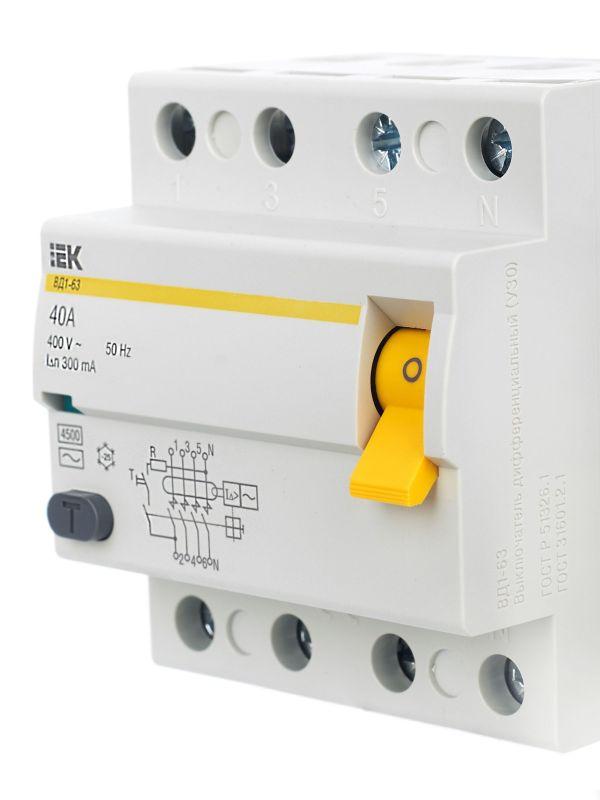 Выключатель дифференциального тока (УЗО) 4п 40А 300мА тип AC ВД1-63 KARAT IEK MDV10-4-040-300