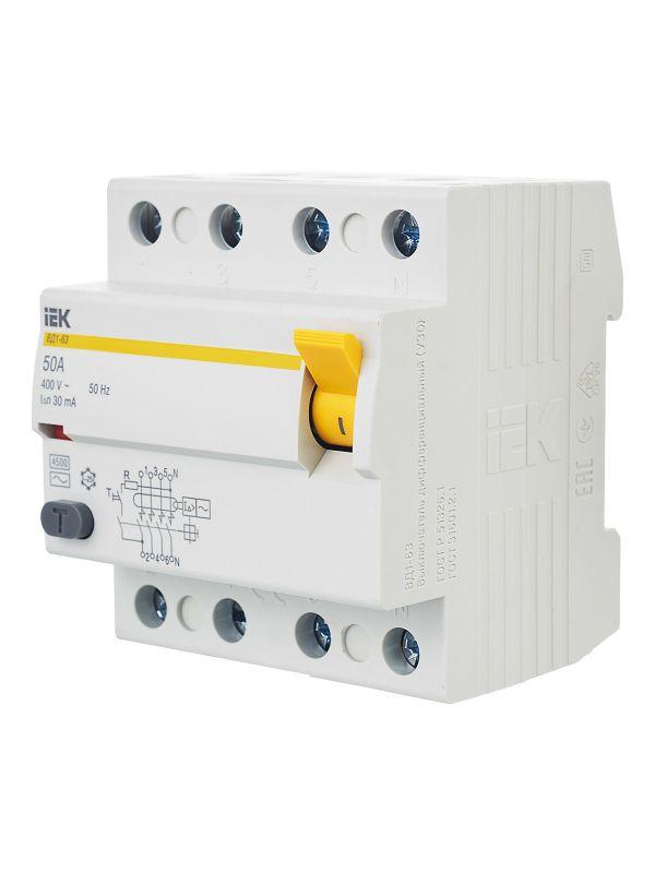 Выключатель дифференциального тока (УЗО) 4п 50А 30мА тип AC ВД1-63 KARAT IEK MDV10-4-050-030