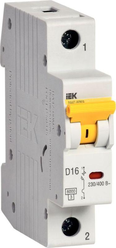 Выключатель автоматический модульный 1п D 16А 6кА ВА47-60МА без тепл. расцеп. KARAT IEK MVA33-1-016-D