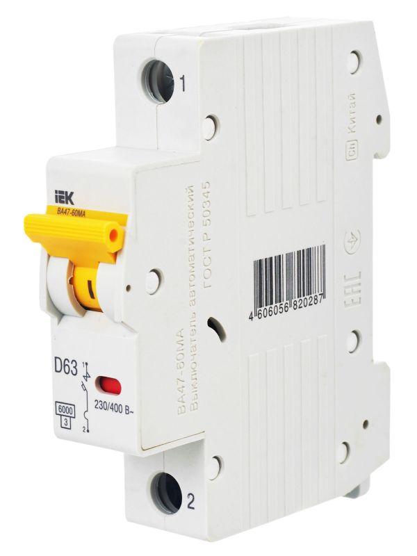 Выключатель автоматический модульный 1п D 63А 6кА ВА47-60МА без тепл. расцеп. KARAT IEK MVA33-1-063-D
