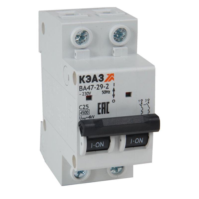 Выключатель автоматический модульный 2п C 16А 4.5кА ВА47-29-2C16-УХЛ3 КЭАЗ 318241