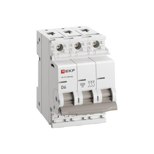 Выключатель автоматический 3п C 6А 6кА ВА 47-63N MA без теплового расцеп. PROxima EKF M63MA636C