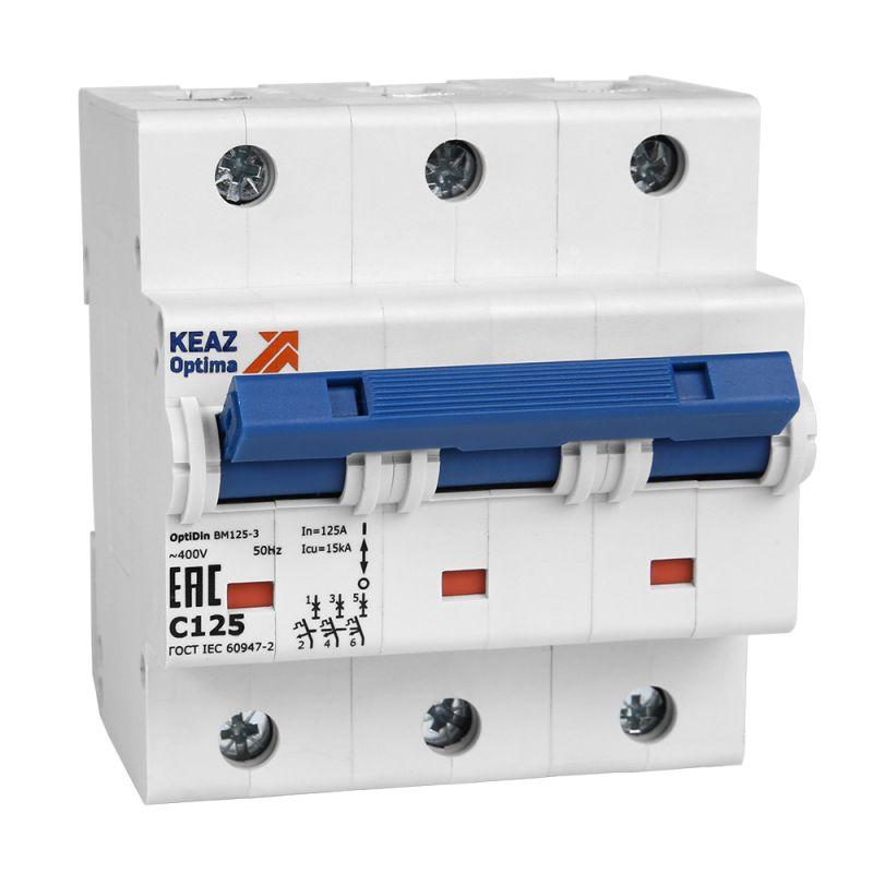 Выключатель автоматический модульный 3п D 80А 20кА OptiDin BM125-3D80-14ln-УХЛ3 КЭАЗ 138602