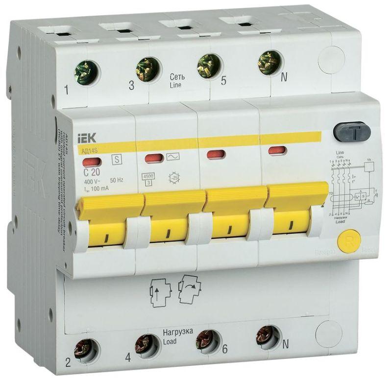 Выключатель автоматический дифференциального тока селективный 4п 20А 100мА тип AC АД14S KARAT IEK MAD13-4-020-C-100