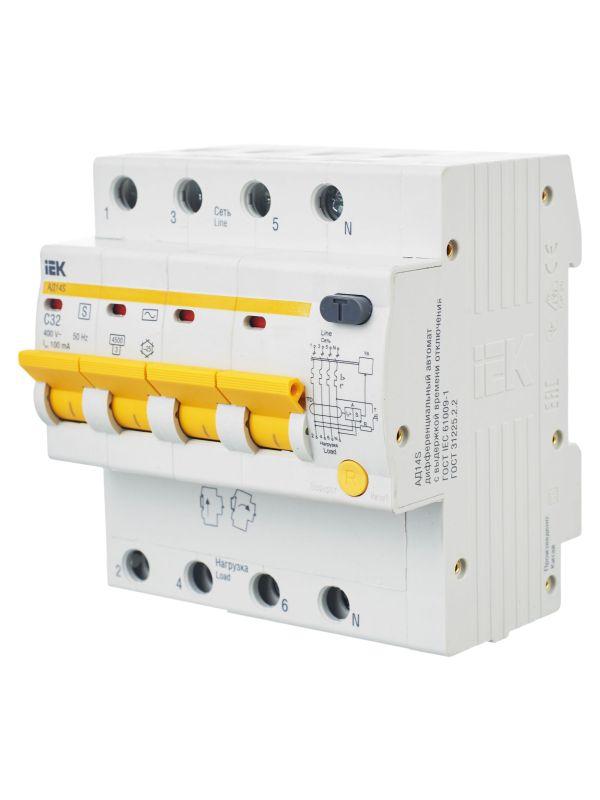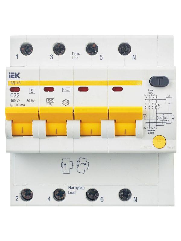 Выключатель автоматический дифференциального тока селективный 4п 32А 100мА тип AC АД14S KARAT IEK MAD13-4-032-C-100