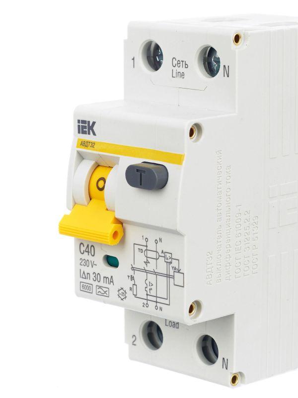 Выключатель автоматический дифференциального тока 2п (1P+N) C 40А 30мА тип A 6кА АВДТ-32 KARAT IEK MAD22-5-040-C-30