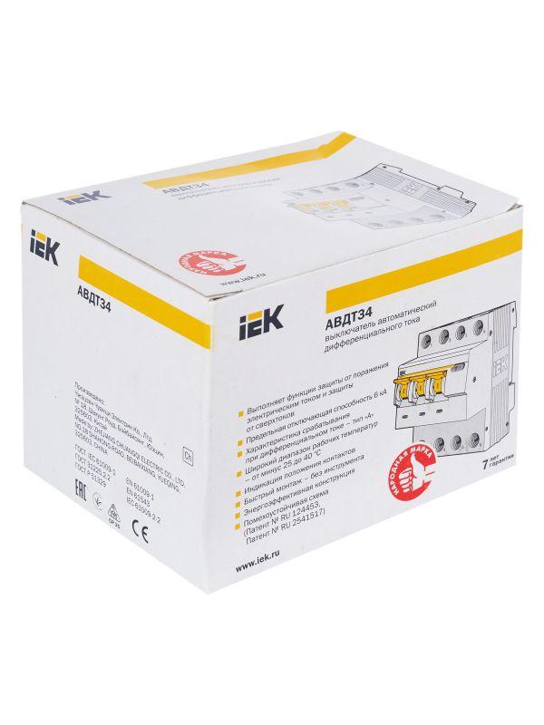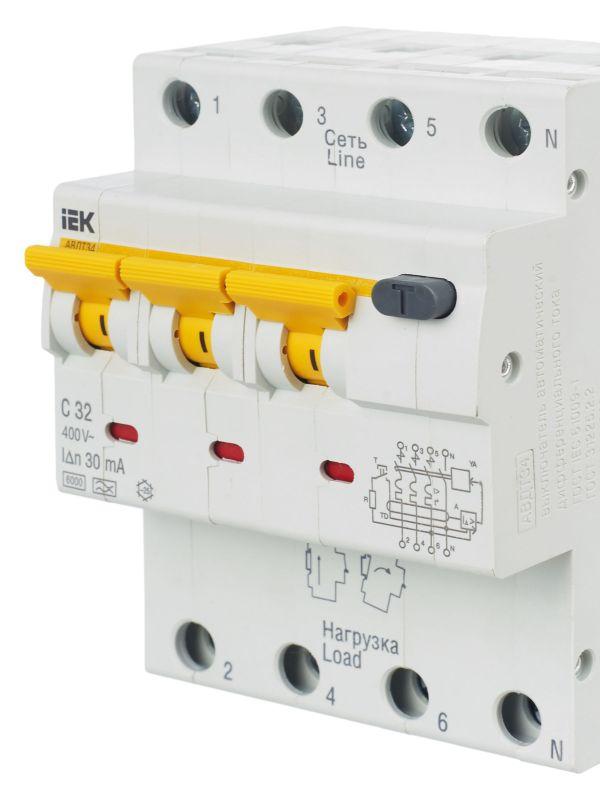 Выключатель автоматический дифференциального тока 4п (3P+N) C 32А 30мА тип A 6кА АВДТ-34 KARAT IEK MAD22-6-032-C-30