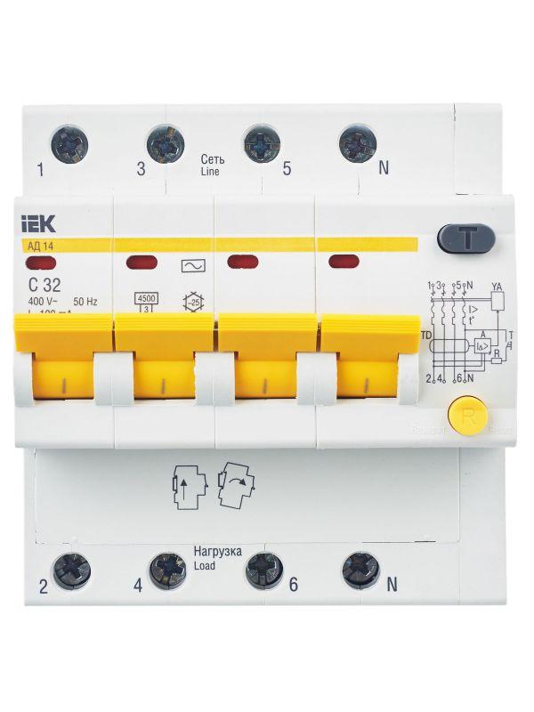 Выключатель автоматический дифференциального тока 4п C 32А 100мА тип AC 4.5кА АД-14 KARAT IEK MAD10-4-032-C-100