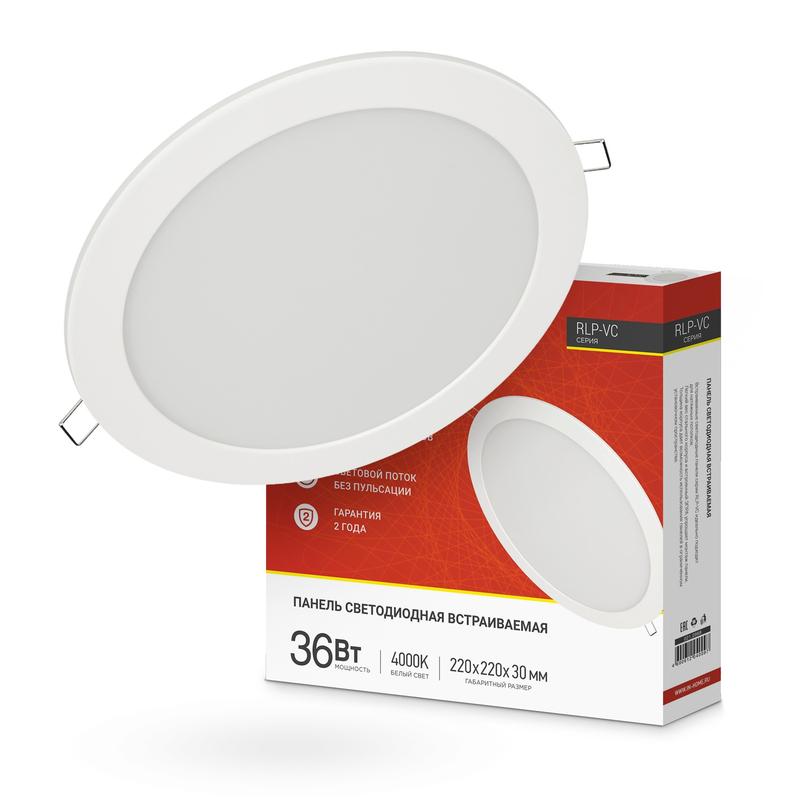 Светильник светодиодный RLP-VC 36Вт 4000К IP40 2880лм 230В 220мм круглый встраив. панель бел. IN HOME 4690612040097
