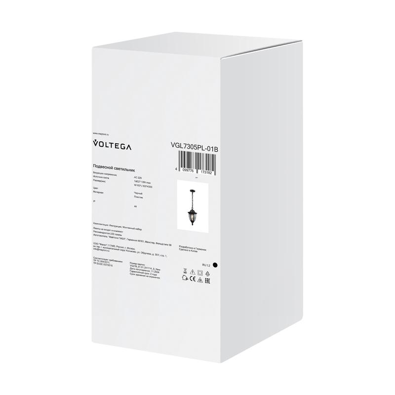Светильник Frak 1х13Вт E27 IP44 подвесной Voltega VGL7305PL-01B
