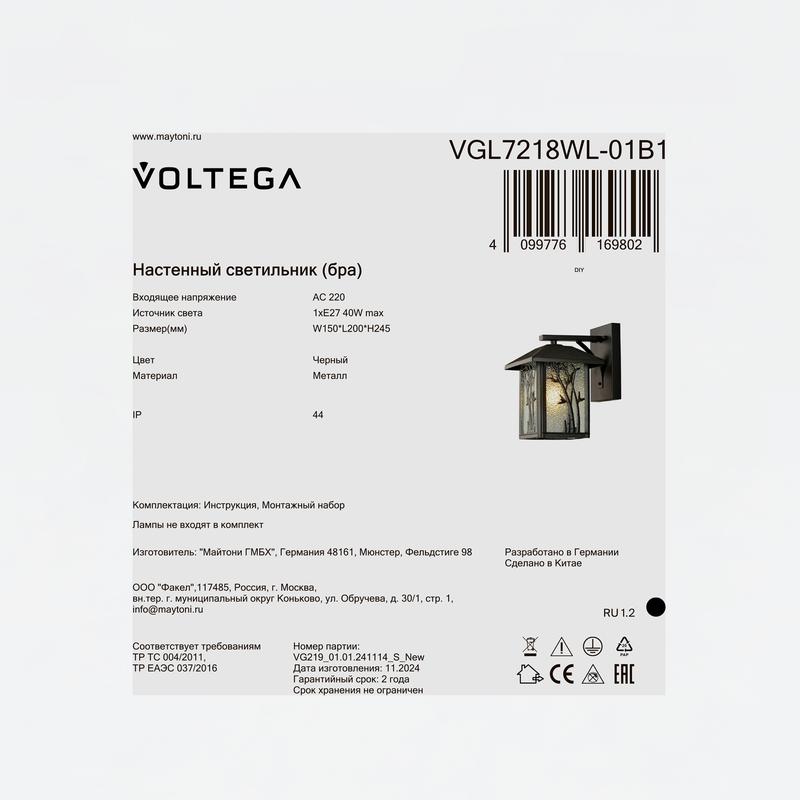 Светильник Saga 1х40Вт E27 IP44 бра настен. Voltega VGL7218WL-01B1