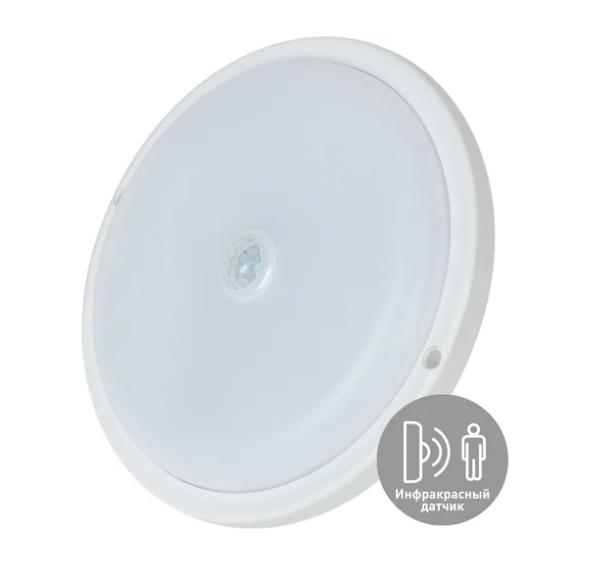 Светильник ДПО 20Вт круг IP65 4000K 230В ЖКХ настенно-потолочный с инфракрасн. датчиком КОСМОС KOC_DPO20WR1IR.4K