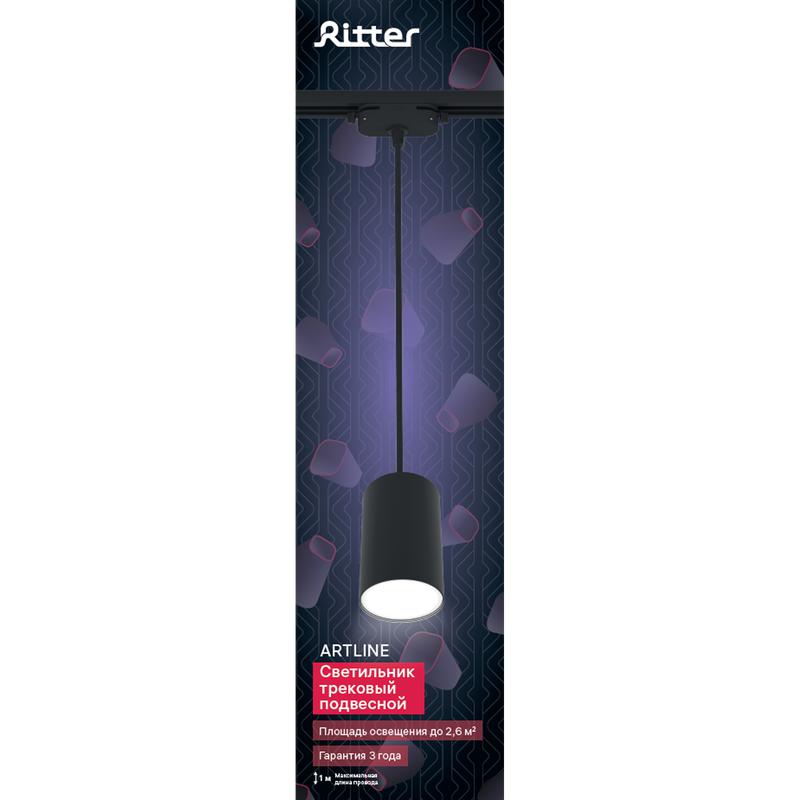Светильник трековый подвес ARTLINE 55х55х100мм GU10 230В алюм. 2.6кв.м черн.н. Ritter 59928 3