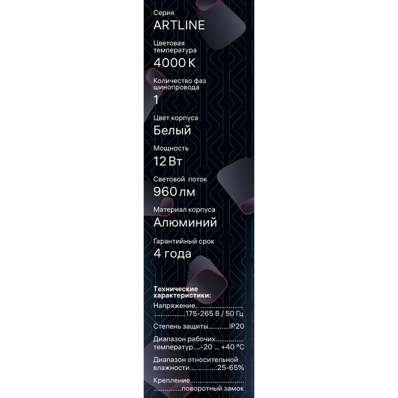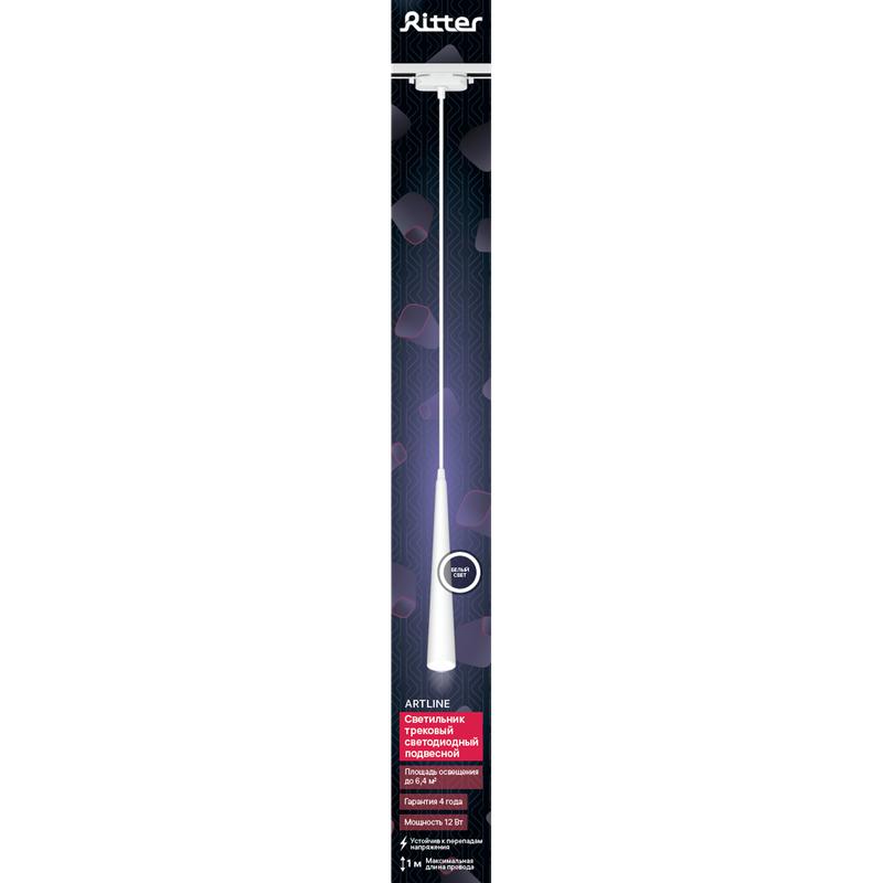 Светильник трековый подвес светодиодный ARTLINE 40х40х300мм 12Вт 960Лм 4000К 230В алюм. 6.4кв.м бел. Ritter 59712 8