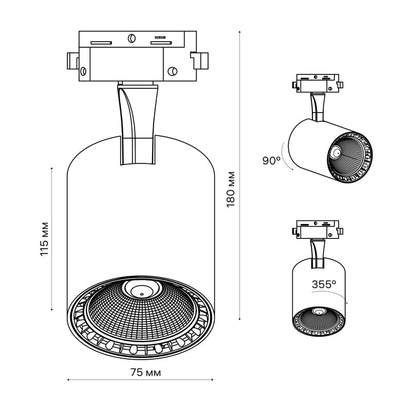 Светильник трековый светодиодный ARTLINE поворотный 75х75х115мм 20В 1700Лм 4000К 230В алюм. 9кв.м бел. Ritter 59733 3