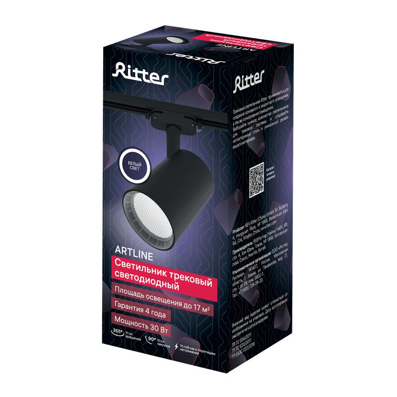 Светильник трековый светодиодный ARTLINE поворотный 90х90х130мм 30Вт 2550Лм 4000К 230В алюм. 17кв.м черн. Ritter 59736 4
