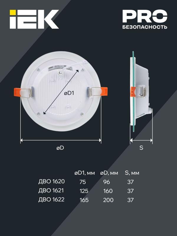 Светильник светодиодный ДВО 1621 12Вт 4000К IP20 встраив. со стекл. круг IEK LDVO0-1621-12-4000-K01