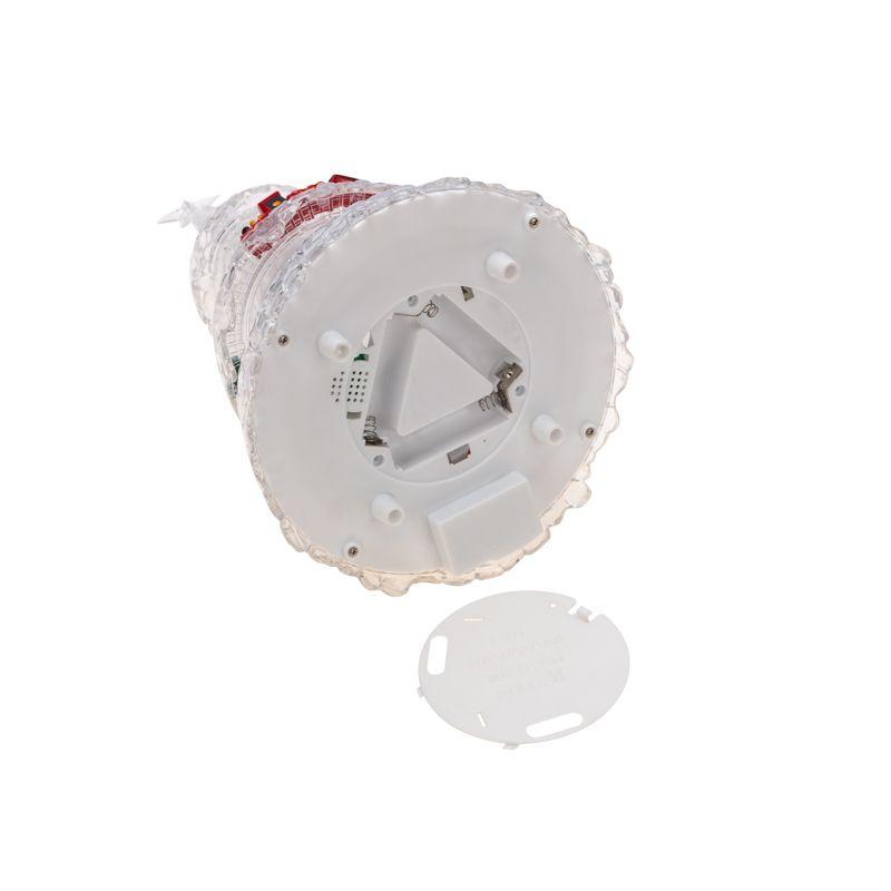 Материал фигуры — прочный прозрачный пластик. В нижней части устойчивой подставки располагается батарейный блок для 3 элементов питания типа АА, а также удобный ползунок включения/выключения. Возможна работа от USB (кабель входит в комплект).