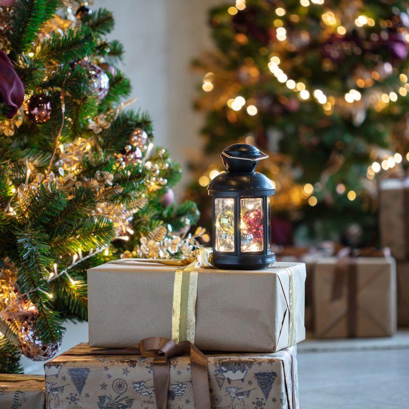 Фонарь декоративный 12х12х20.6см с шариками тепл. бел. корпус черн. Neon-Night 513-061