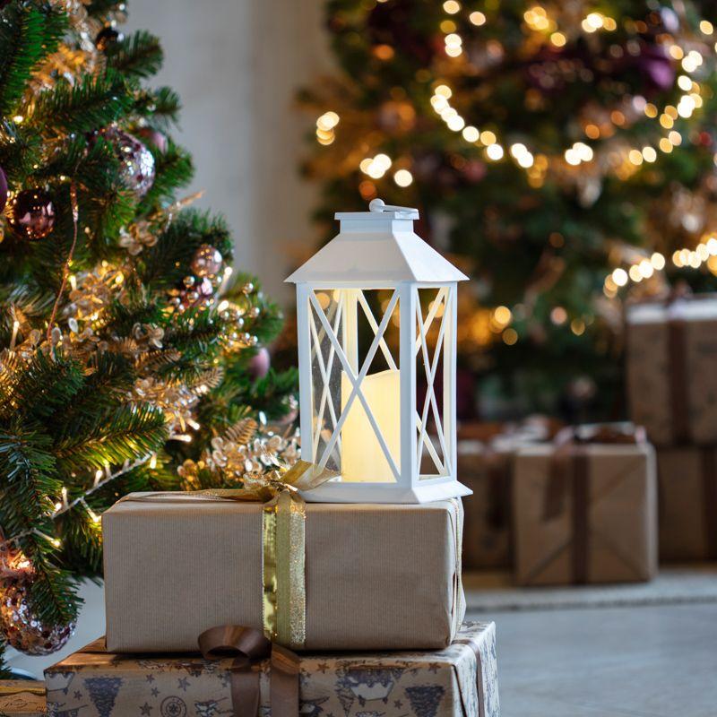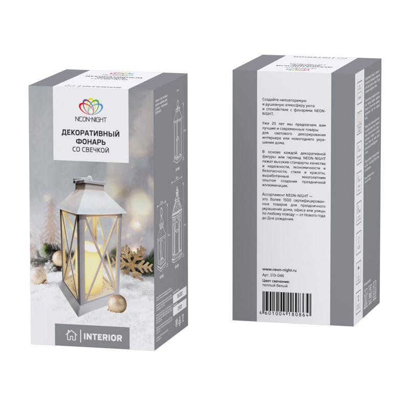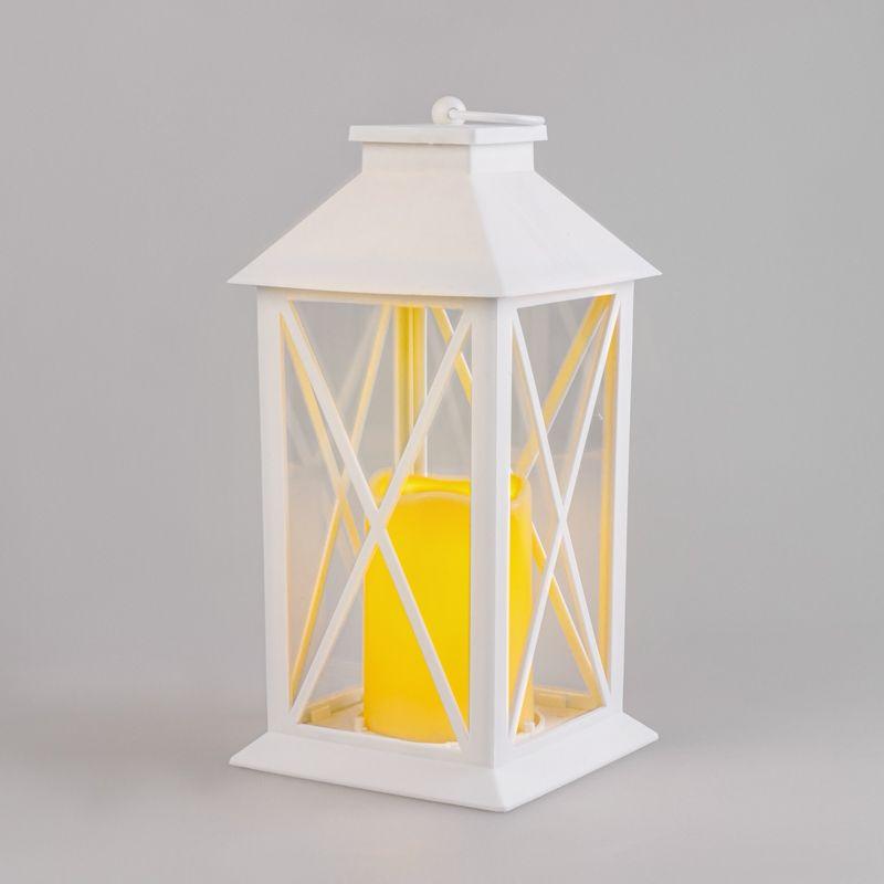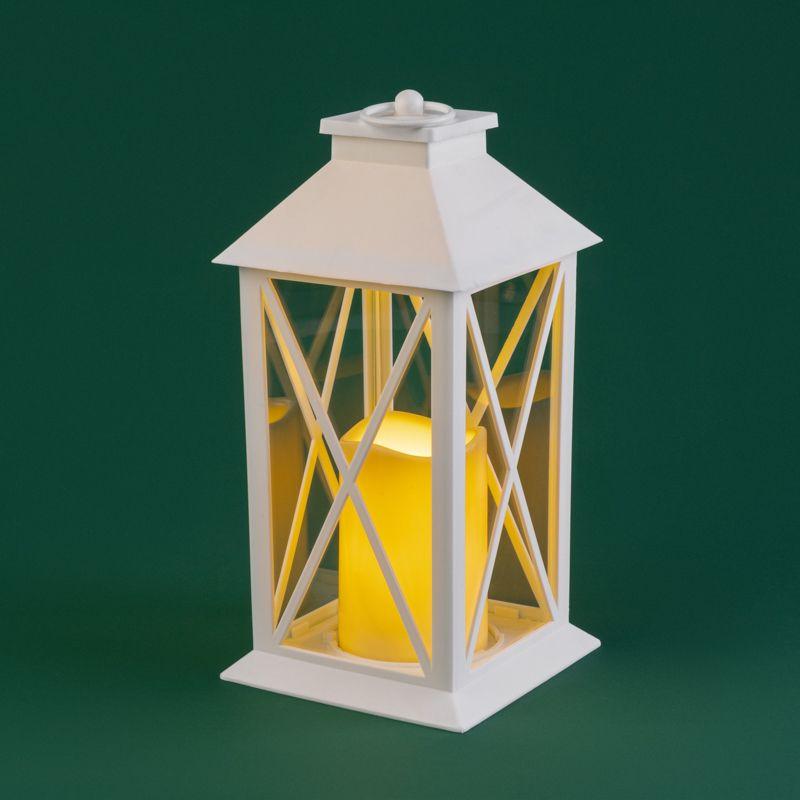 Фонарь декоративный 14х14х29см тепл. бел. со свечой корпус бел. Neon-Night 513-046