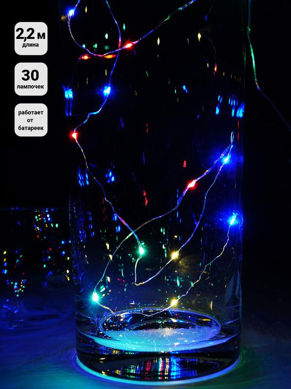 Гирлянда "Нить" LDM30-M-BO 30 разноцветных минисветодиодов 2.17м 1 режим мигания для помещений (3хAA не в компл.) SHLights 4690601042187A