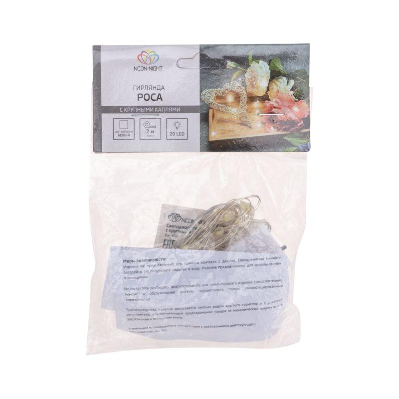 Гирлянда светодиодная "Роса" с крупными каплями 2м 20LED бел. IP20 2хCR2032 (в комплекте) Neon-Night 302-005