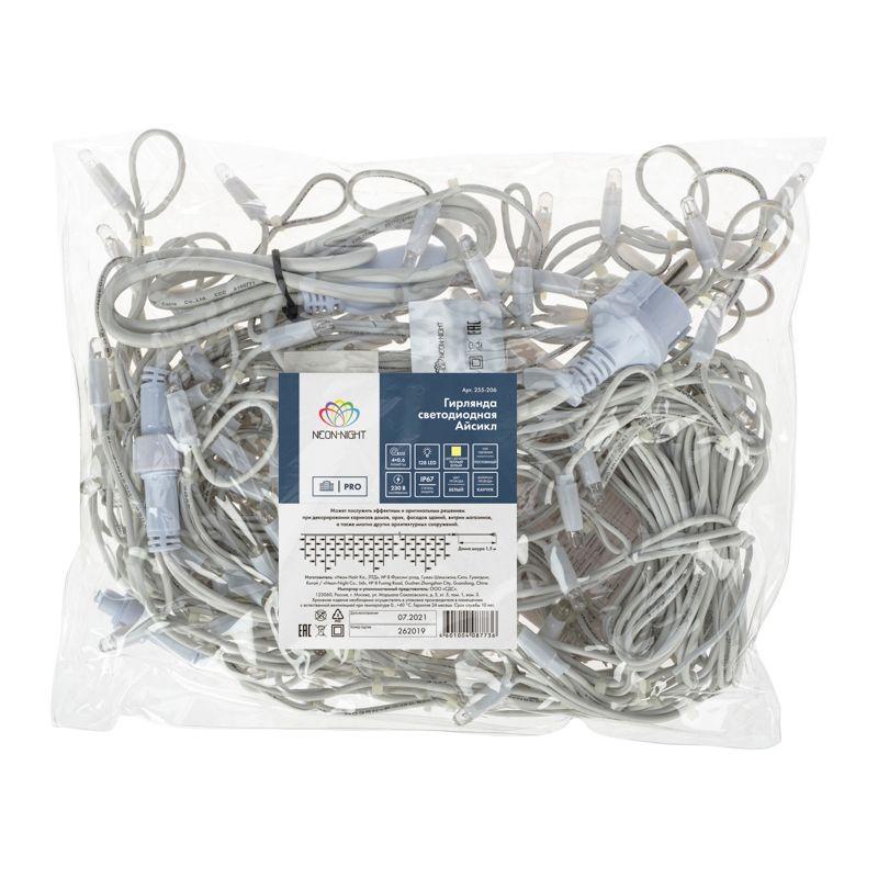 Гирлянда светодиодная "Айсикл" (бахрома) 4х0.6м 128LED тепл. бел. 10Вт 230В IP67 провод каучук бел. (нужен шнур питания 315-001) Neon-Night 255-206