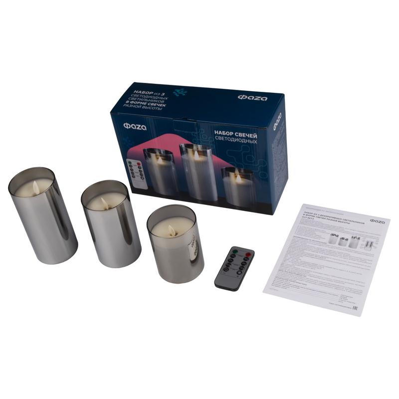 Свеча декоративная CL7-SET3-sr с пультом 3хAAA для каждой свечи (не в компл.) серебр. (уп.3шт) ФАZА 5018792