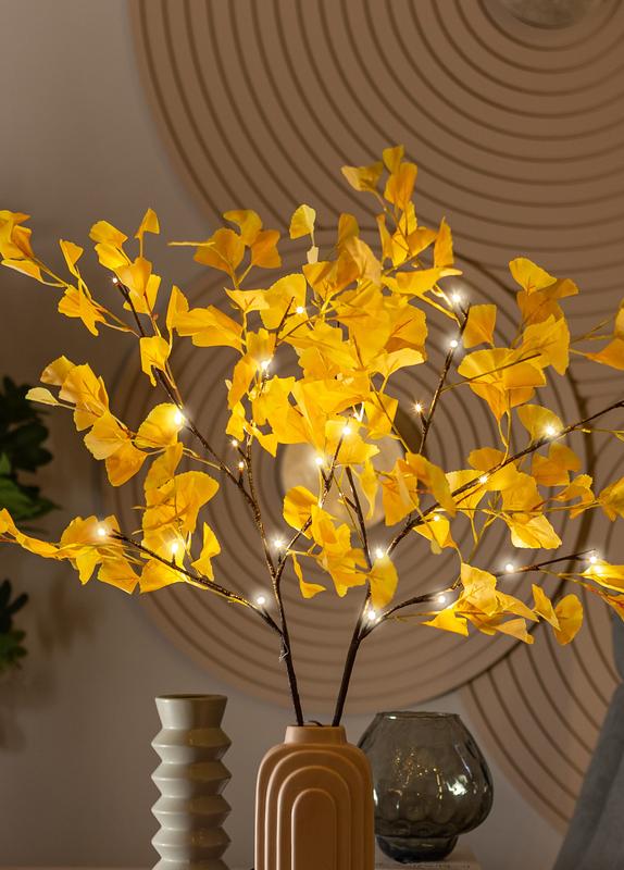 Ветвь гинкго имитация 90см 32LED тепл. бел. IP44 6ч таймер провод корич. 50см КОСМОС KOC_INT-B130