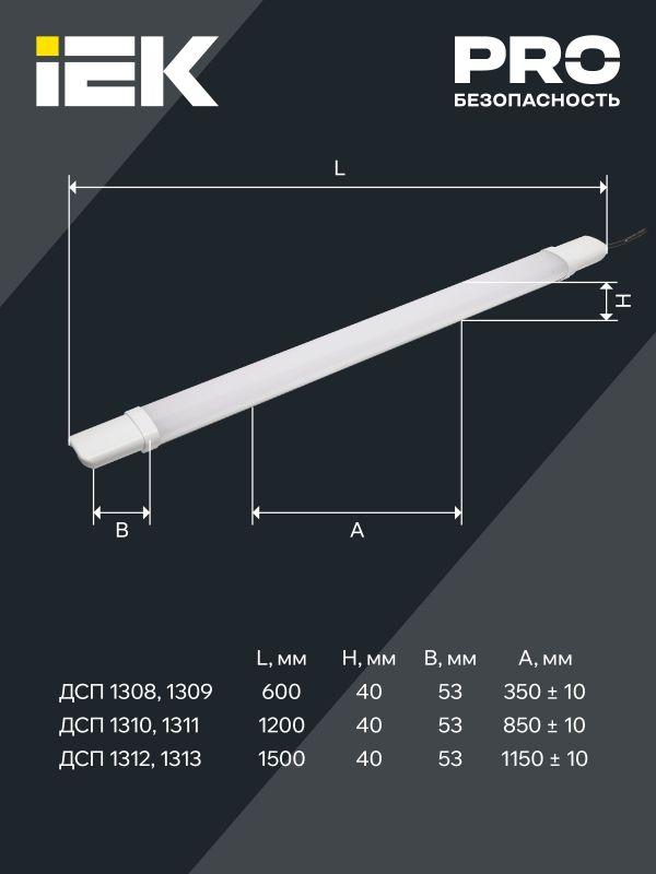 Светильник светодиодный ДСП 1308 18Вт 4000К IP65 600мм пластик бел. IEK LDSP0-1308-18-4000-K01