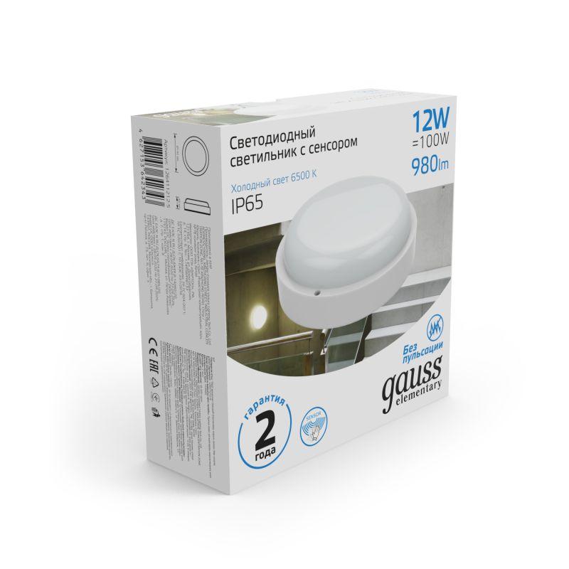 Светильник светодиодный Elementary 12Вт 6500К IP65 980лм d140х48мм ДБП круг настенно-потолочный с оптико-микроволнов. датчиком GAUSS 126411312-S