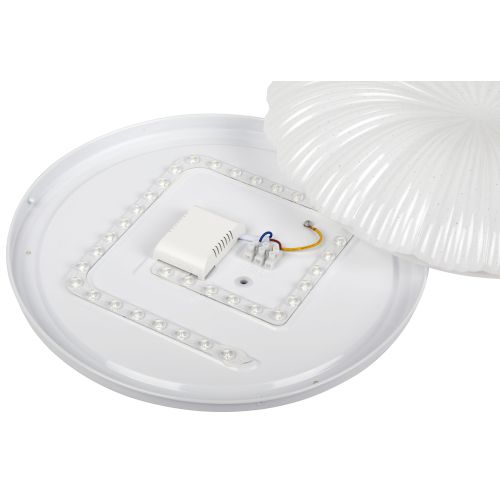 Компактные размеры 395?75 мм позволяют использовать его в сухих пространствах (степень защиты IP20) с низкими потолками, а рельефная форма плафона сочетается со многими интерьерными стилями.