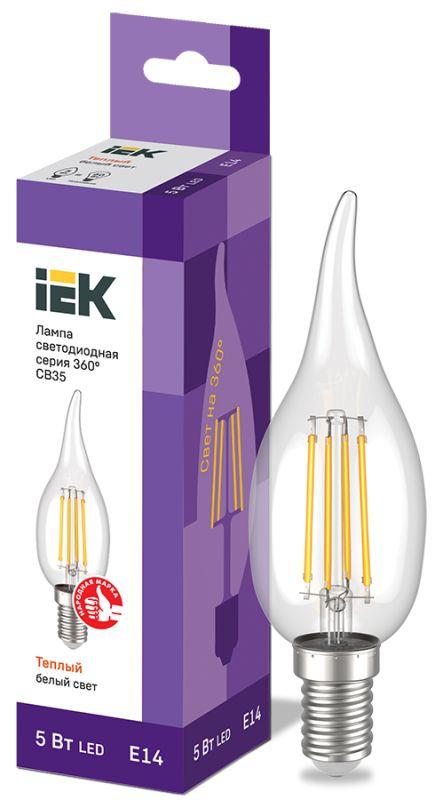 Лампа светодиодная филаментная 360° 5Вт CB35 свеча на ветру 3000К E14 230В IEK LLF-CB35-5-230-30-E14-CL