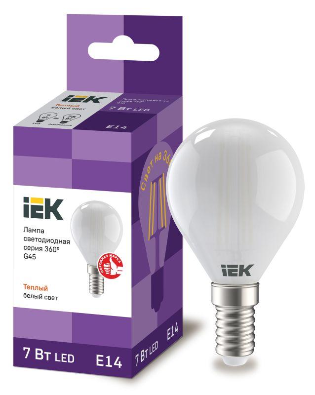 Лампа светодиодная филаментная 360° 7Вт G45 шар матовая 3000К тепл. бел. E27 230В IEK LLF-G45-7-230-30-E27-FR