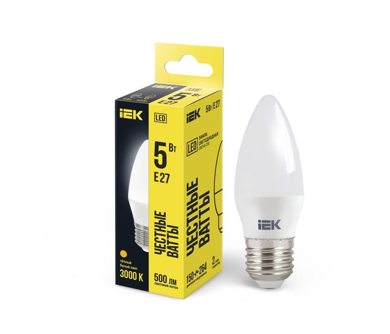 Лампа светодиодная C35 5Вт свеча 3000К тепл. бел. E27 450лм 230-240В IEK LLE-C35-5-230-30-E27