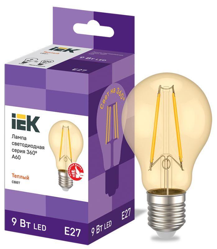 Лампа светодиодная филаментная 360° 9Вт A60 грушевидная золотая 2700К тепл. бел. E27 230В IEK LLF-A60-9-230-30-E27-CLG
